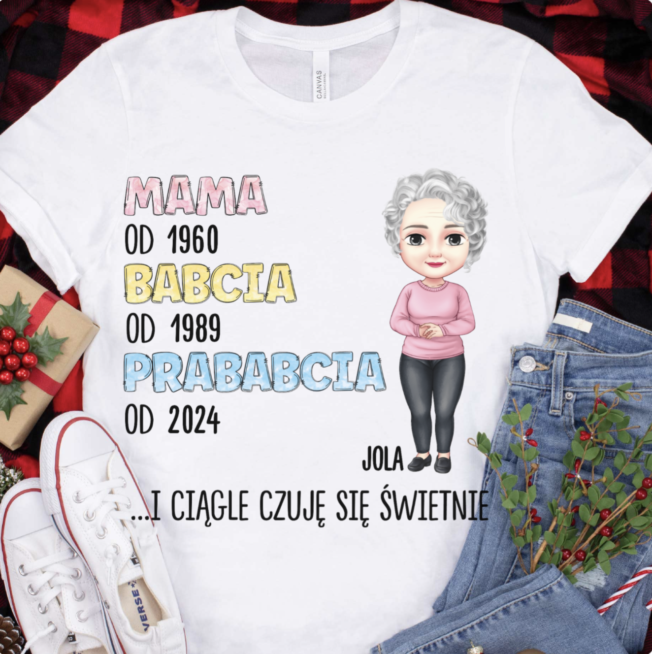 Czy chcesz spersonalizować środkowy tekst na koszulce?